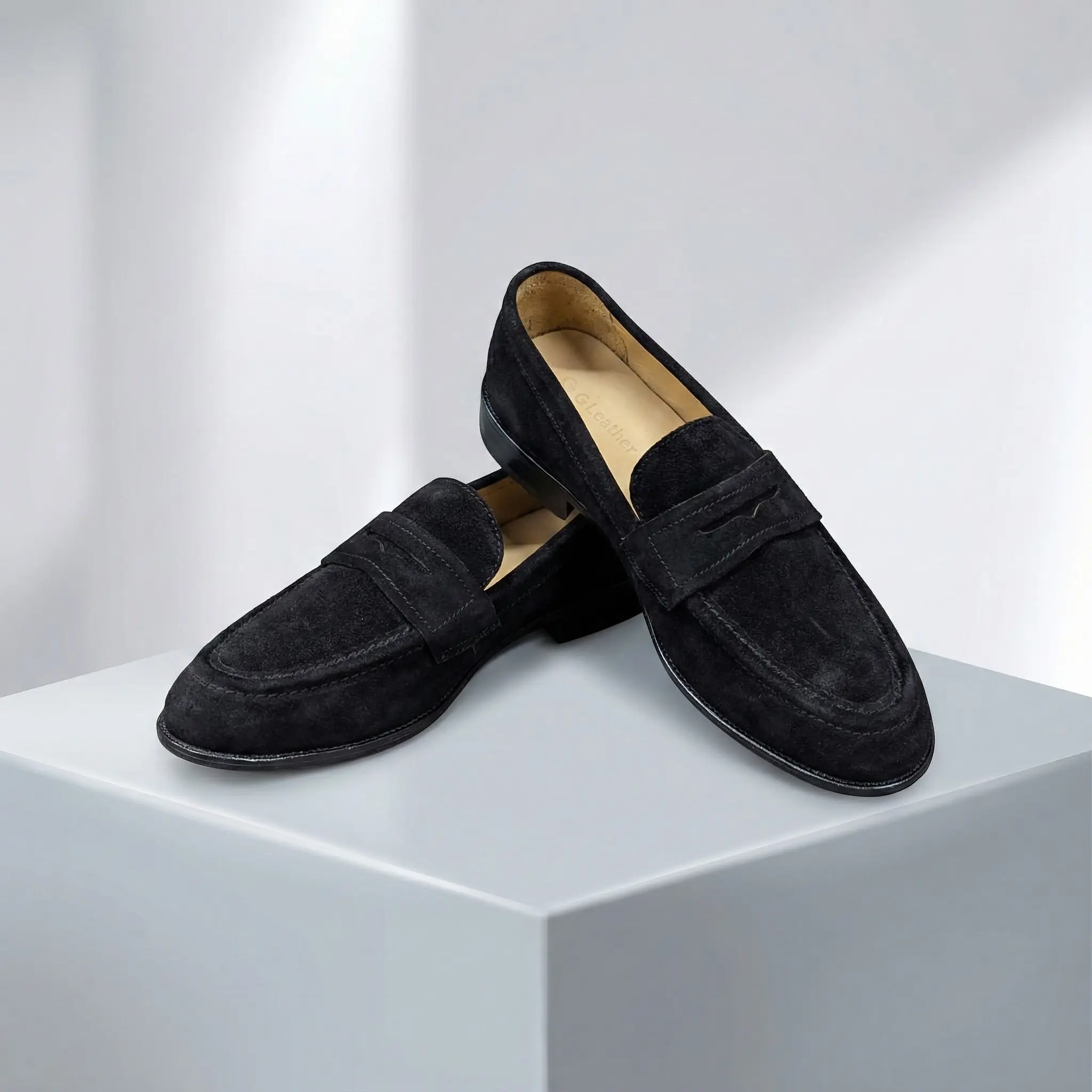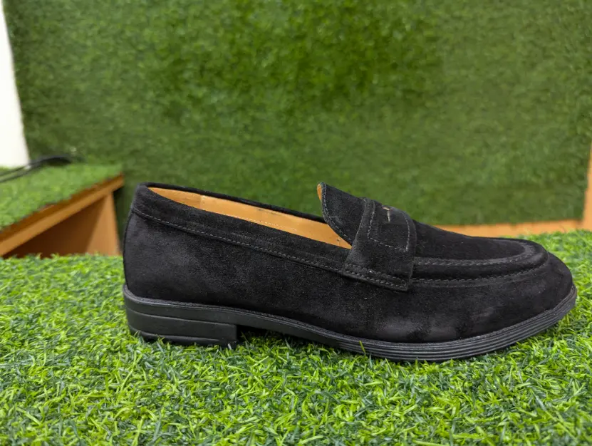 Achieve a sharp, minimalist aesthetic with the G Leather Premium Suede Penny Loafer Casual Shoe. The deep black suede finish provides a luxurious and sleek appearance, making it an essential for every modern gentleman’s wardrobe. Whether paired with a blazer or dressed down for a casual outing, its clean lines and premium finish ensure a polished look every time.