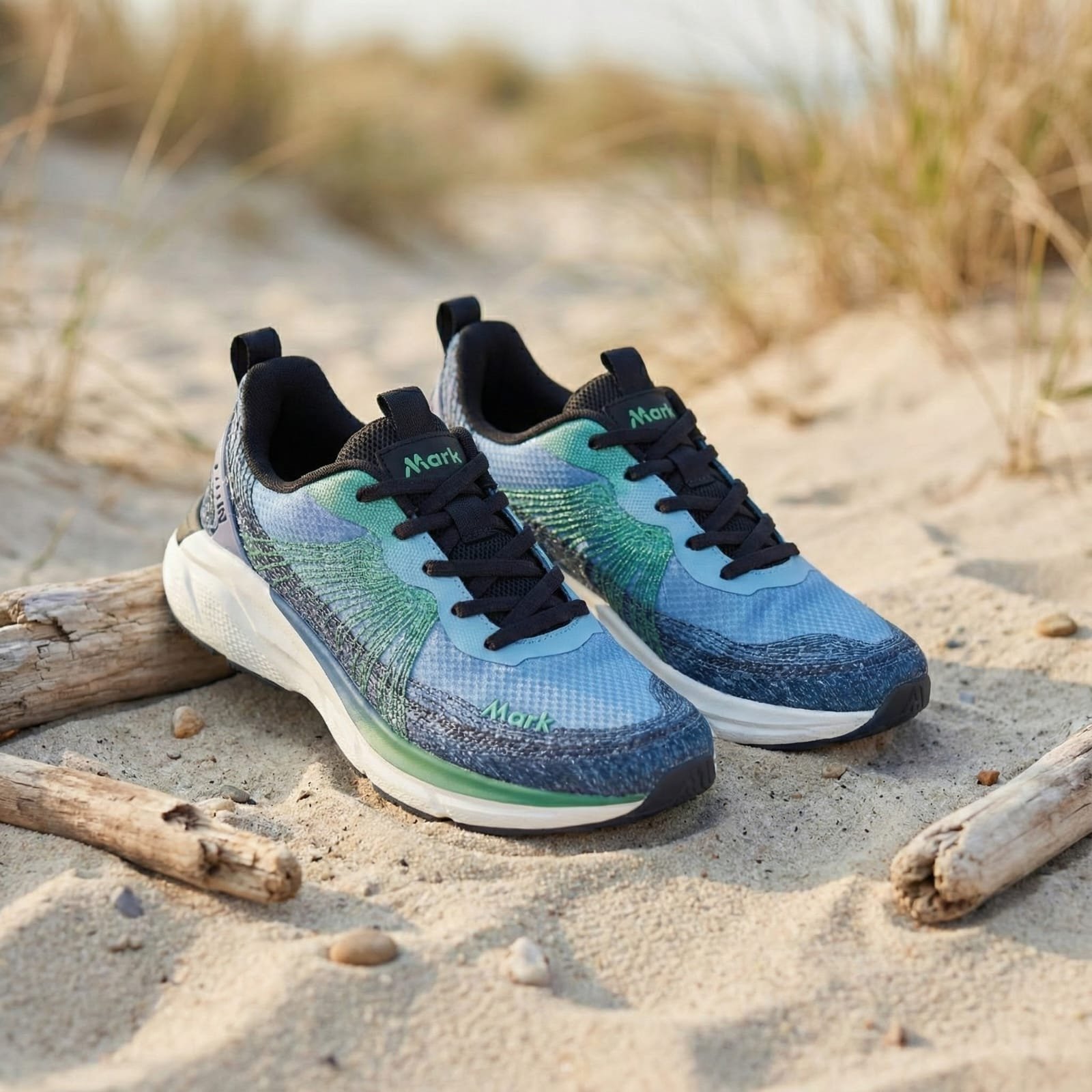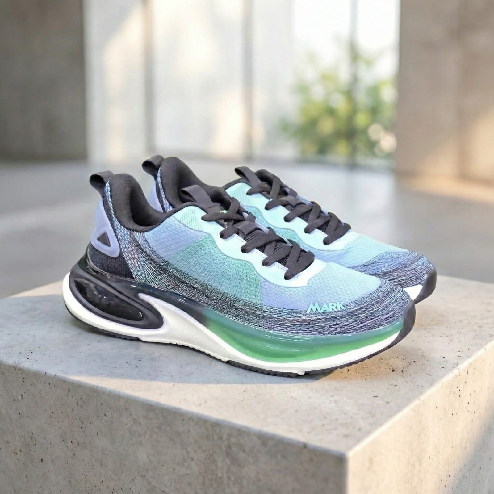 Introduce a fresh vibe to your workout or daily commute with the Mark Gradient Edition Sports Sneaker. Featuring a stunning transition from cool blue to mint green, this shoe is as stylish as it is functional.
